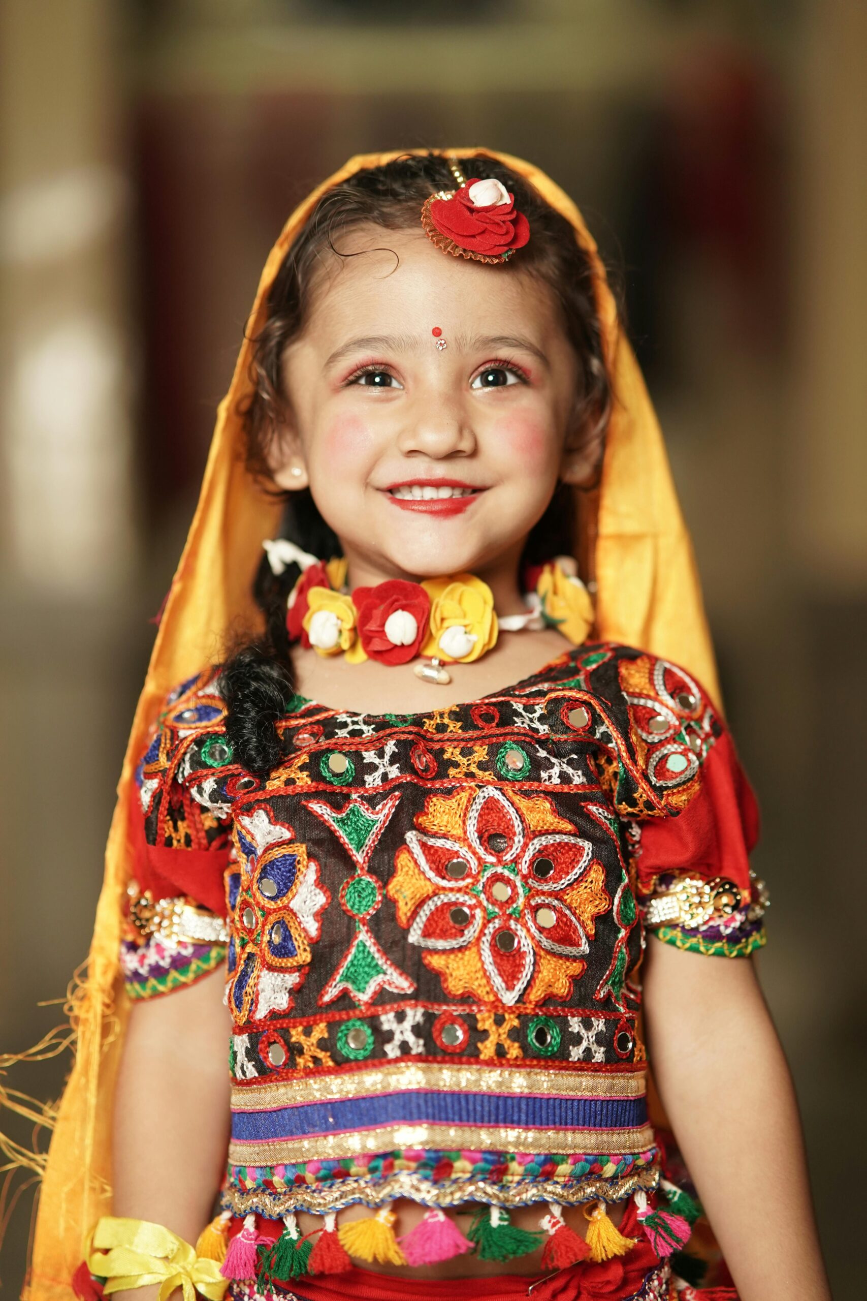 Rajasthani attire features deep and vibrant colors which depict colourful Rajasthan. Women wear Leheriya sarees, and men wear multicoloured safas or turbans. Women prefer bright and rich colors such as red, pink, and yellow. Traditional women’s attire includes Ghaghra-Lugdi, Pomcha, Odhani with Jawar-Bhant and Tarabhant designs, Kachhavu (worn by tribal women), and Chunri cloth.Men wear dhoti-kurta, Angrakha, Angochha, Achkan, and turbans.